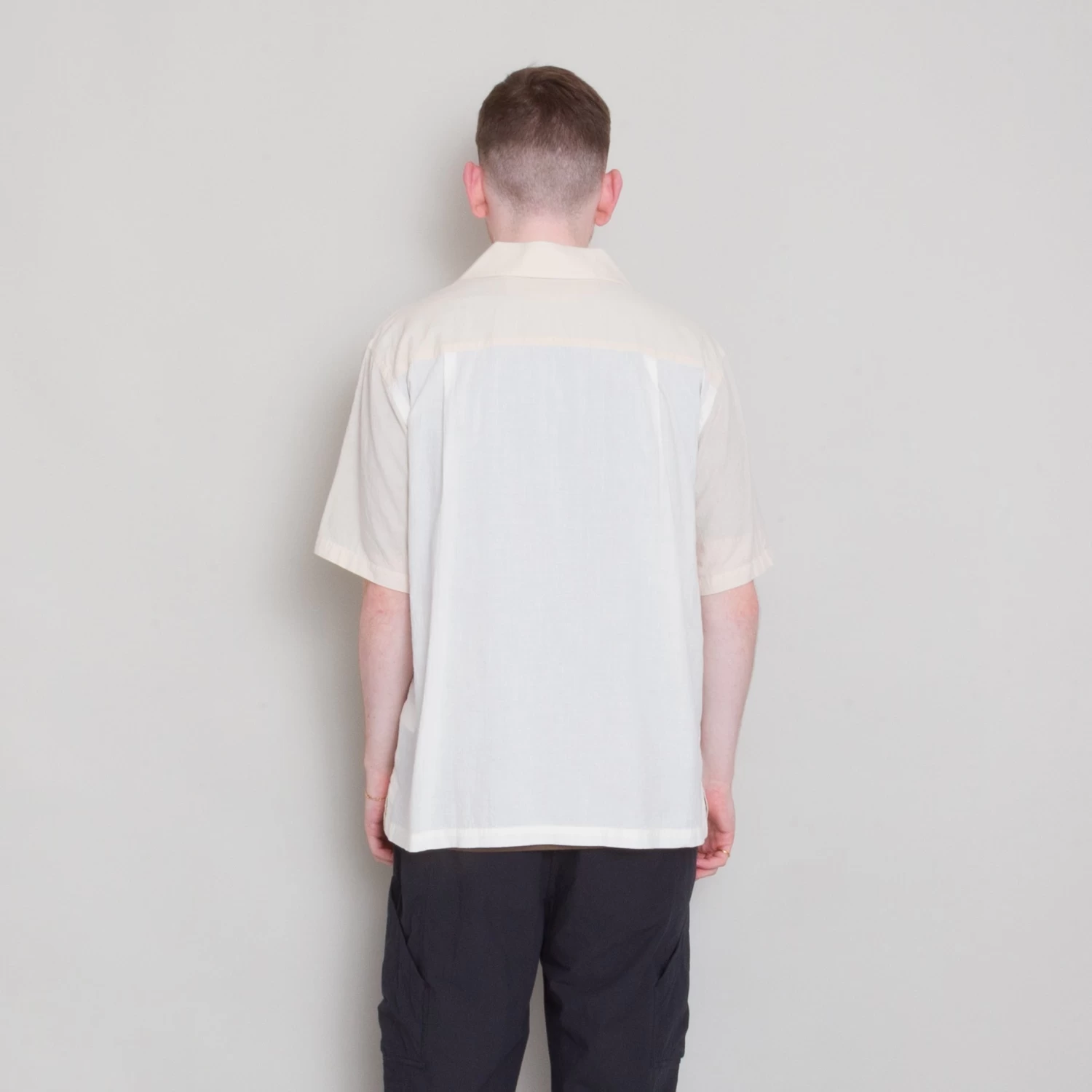 Short sleeve shirt block with oversized fit.