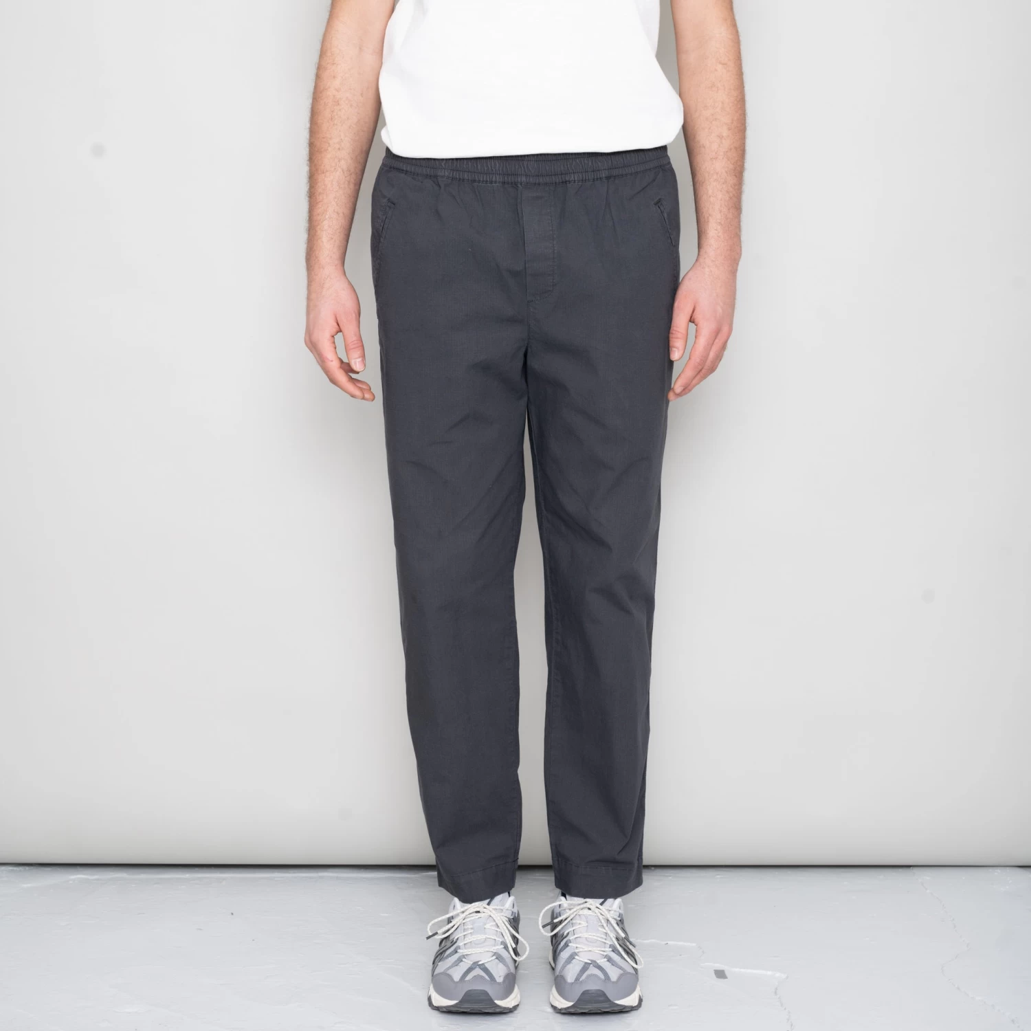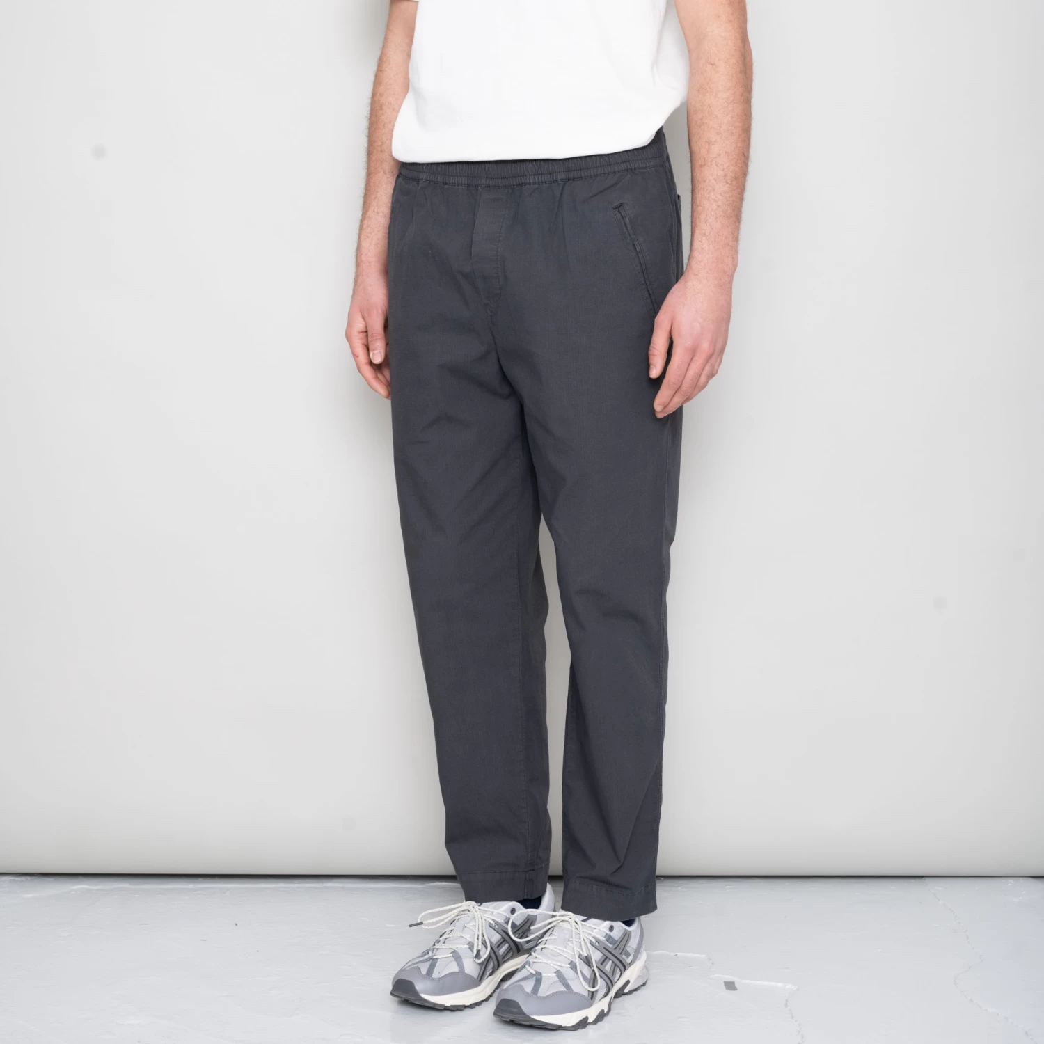 Leg shape as Assembly Pant; wider, looser leg fit with cropped length with pleat detail at front.