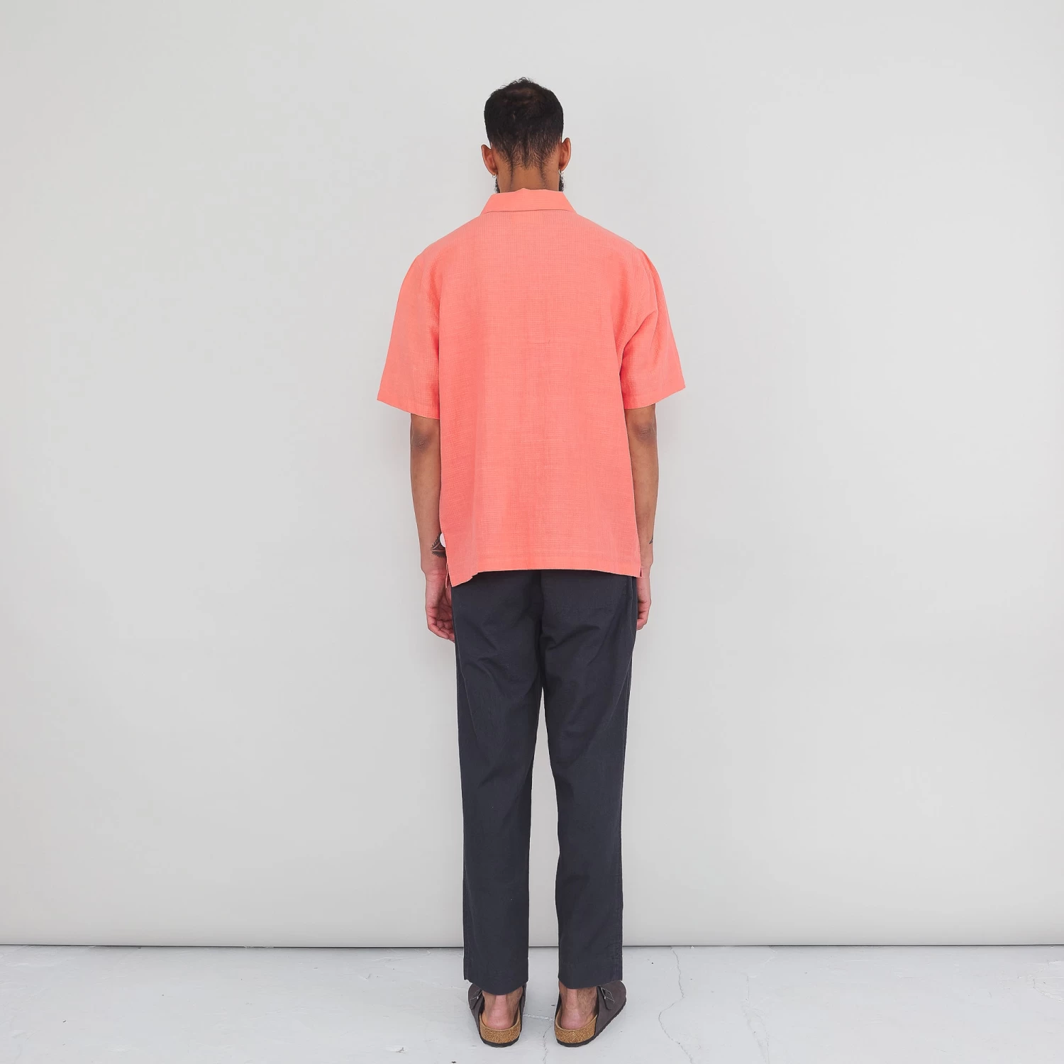 Boxy, relaxed fit short-sleeve shirt with a spread-collar.