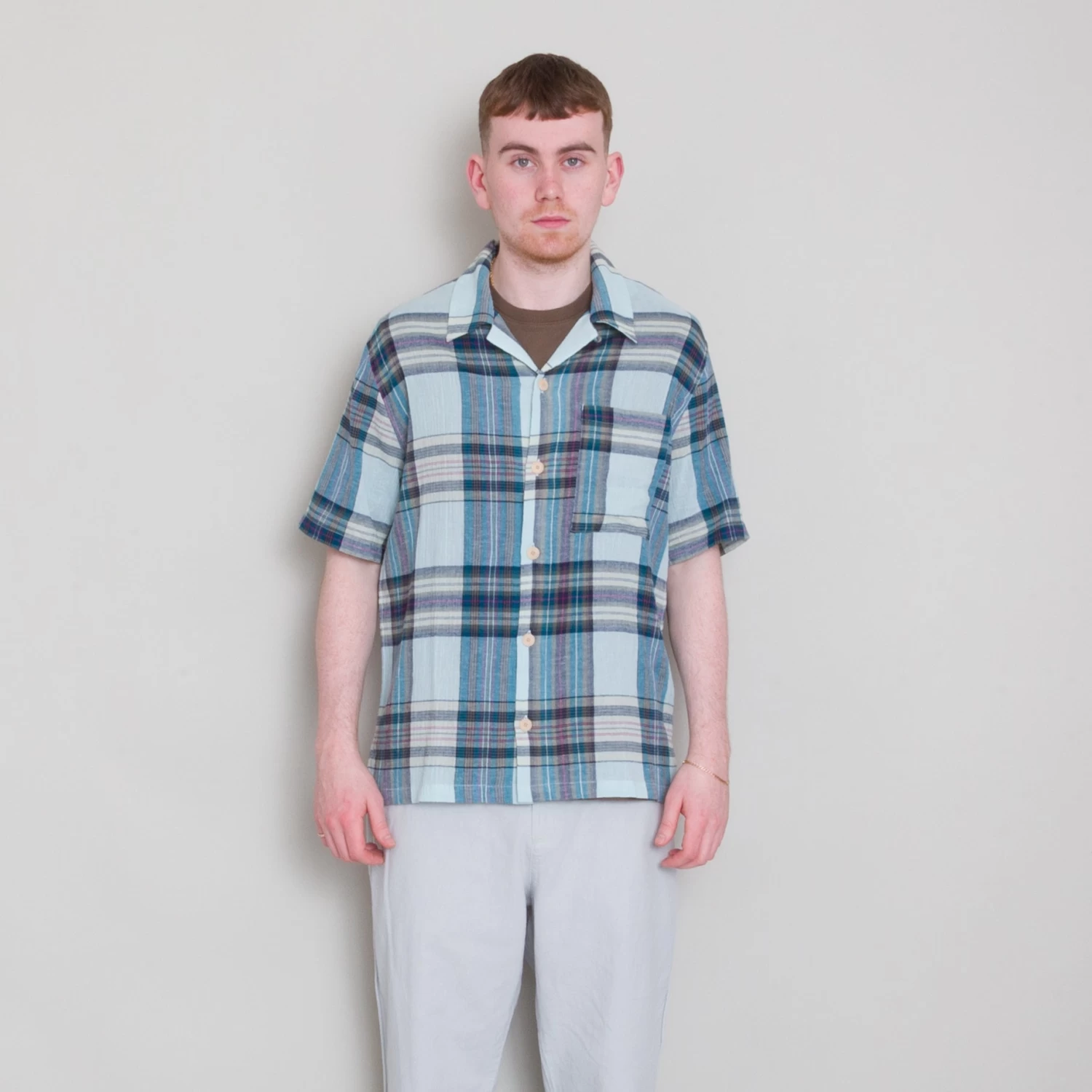 50’s style short sleeve shirt block with boxy fit.
